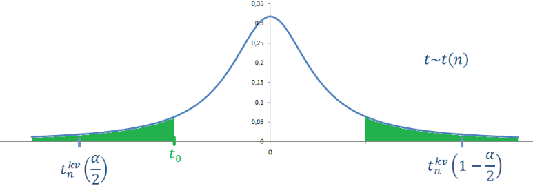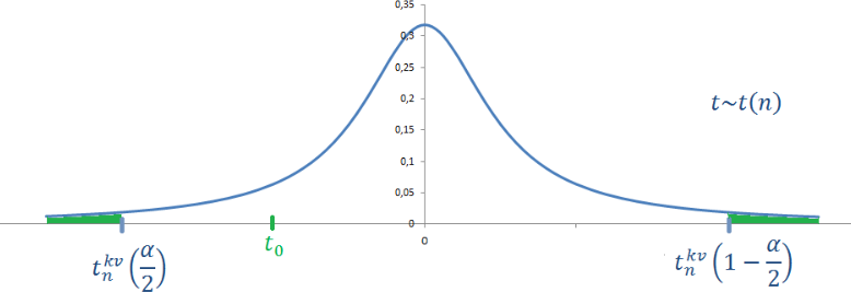 #1. Na hladine významnosti alfa boli testované hypotézy H0:bi=0 ><H1:bi≠0. Na obrázku je zvýraznená oblasť, ktorej plošný obsah vyjadruje