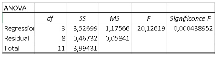 #7. Pri skúmaní závislosti medzi vyplácanou mzdou a transferovými platbami bol hľadaný lineárny regresný model a následne vyhodnocovaná jeho štatistická významnosť. Z tabuľky ANOVA určte, aká bola priemerná veľkosť reziduálneho štvorca.
